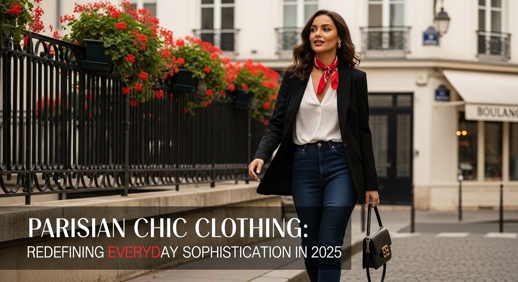 Imagine walking along the Seine at dawn. A woman passes by in a simple white shirt, high-waisted jeans, and a trench coat draped effortlessly over her shoulders. She wears minimal makeup, flat shoes, and carries a woven basket bag. Yet somehow, she looks like she stepped out of a magazine. This, my friend, is the magic of Parisian chic clothing. It isn’t about wealth or trends. Instead, it’s about intention, quality, and confidence.